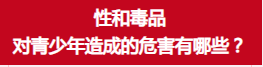 心理危害上,过早性行为产生的心理压力、焦虑等,性侵犯造成的创伤后应激障碍、抑郁和自杀倾向危害青少年心理健康。毒品使青少年产生心理依赖和戒断反应,认知能力下降,出现攻击、冲动等行为问题。