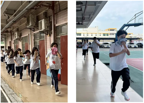 随着警报钟声响起。同学们迅速反应,用湿毛巾捂住口鼻,按照既定的疏散路线有序撤离至安全区域。